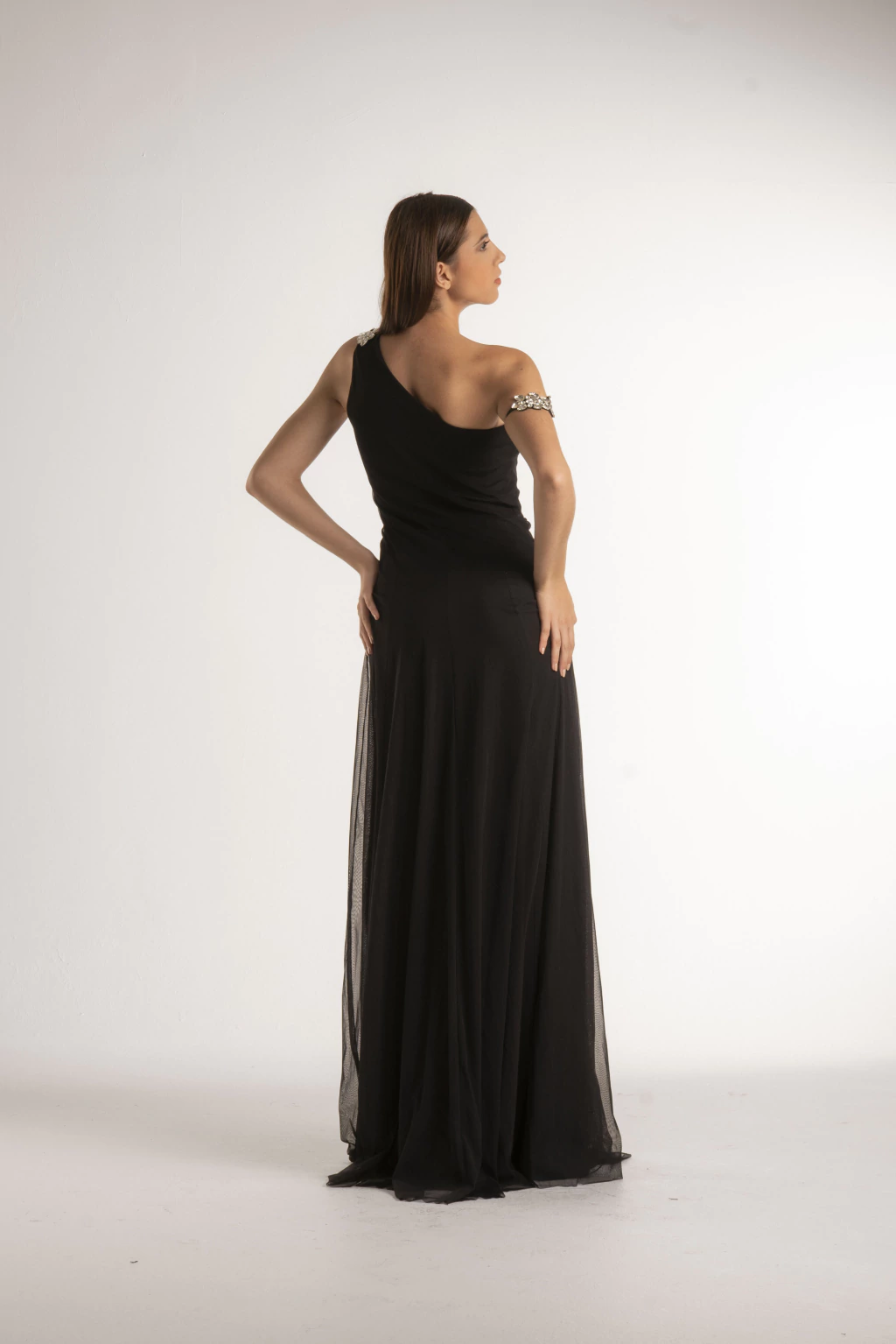 Los detalles de strass distribuidos estratégicamente en la prenda le dan un brillo sutil y un toque muy princesa, haciendo que cada movimiento capture todas las miradas. Confeccionado con materiales de alta calidad, este vestido ofrece una caída impecable y comodidad para que te sientas única en cualquier evento especial.